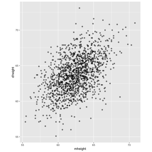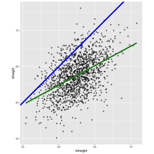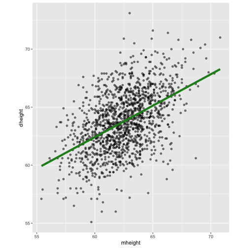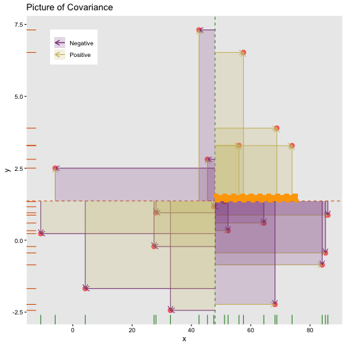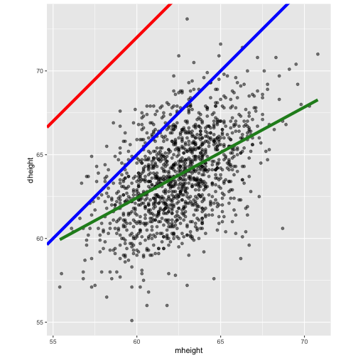 class: center, middle, inverse, title-slide # STA 506 2.0 Linear Regression Analysis ## Lecture 1: Introduction to regression analysis ### Dr Thiyanga S. Talagala ### 2020-08-29 --- background-image: url('orange.jpg') background-position: center background-size: cover ### What does a statistician do? --- ### What does a statistician do? ``` # A tibble: 15 x 6 country continent year lifeExp pop gdpPercap <fct> <fct> <int> <dbl> <int> <dbl> 1 Afghanistan Asia 1952 28.8 8425333 779. 2 Afghanistan Asia 1957 30.3 9240934 821. 3 Afghanistan Asia 1962 32.0 10267083 853. 4 Afghanistan Asia 1967 34.0 11537966 836. 5 Afghanistan Asia 1972 36.1 13079460 740. 6 Afghanistan Asia 1977 38.4 14880372 786. 7 Afghanistan Asia 1982 39.9 12881816 978. 8 Afghanistan Asia 1987 40.8 13867957 852. 9 Afghanistan Asia 1992 41.7 16317921 649. 10 Afghanistan Asia 1997 41.8 22227415 635. 11 Afghanistan Asia 2002 42.1 25268405 727. 12 Afghanistan Asia 2007 43.8 31889923 975. 13 Albania Europe 1952 55.2 1282697 1601. 14 Albania Europe 1957 59.3 1476505 1942. 15 Albania Europe 1962 64.8 1728137 2313. ``` --- <!-- --> --- <!-- --> --- ### What is Regression Analysis? - Statistical technique for investigating and modelling the relationship between variables. ### Statistical Modelling - a simplified, mathematically-formalized way to approximate reality (i.e. what generates your data) and optionally to make predictions from this approximation. --- background-image: url('regression.PNG') background-position: center background-size: contain ### Statistical Modelling: The Bigger Picture --- background-image: url('workflowds.png') background-position: center background-size: contain ### Statistical Modelling Workflow <!--https://github.com/MaximeWack/tidyflow--> .footer-note[.tiny[.green[Image Credit: ][Hadley Wickham ](https://r4ds.had.co.nz/)]] --- background-image: url('hellor.png') background-position: center background-size: contain ### Software: R and RStudio (IDE) [Visit: https://hellor.netlify.app/] --- ### Consider trying to answer the following kinds of questions: - To use the parents’ heights to predict childrens’ heights. .pull-left[ ``` mheight dheight 1 59.7 55.1 2 58.2 56.5 3 60.6 56.0 4 60.7 56.8 5 61.8 56.0 6 55.5 57.9 ``` ] .pull-right[ <!-- --> ] Predict the daughter's height if her mother's height is 66 inches? --- background-image: url('calculator.png') background-position: right background-size: contain --- background-image: url('curvefitting.jpg') background-position: right background-size: contain .pull-left[ - Regression Analysis involves curve fitting. - **Curve fitting:** The process of finding a relation or equation of **best fit**. ] --- # Model <!--https://www2.stat.duke.edu/courses/Spring19/sta210.001/slides/lec-slides/01-regression-intro.html#18--> `$$Y = f(x_1, x_2, x_3) + \epsilon$$` > Goal: Estimate `\(f\)` ? ## How do we estimate `\(f\)`? ### Non-parametric methods: estimate `\(f\)` using observed data without making explicit assumptions about the functional form of `\(f\)`. ### Parametric methods estimate `\(f\)` using observed data by making assumptions about the functional form of `\(f\)`. Ex: `\(Y = \beta_0 + \beta_1x_1 + \beta_2x_2 + \beta_3x_3 + \epsilon\)` --- background-image: url('regressionpaper1.png') background-position: center background-size: contain --- background-image: url('regressionpaper2.png') background-position: center background-size: contain --- background-image: url('regressionpaper3.png') background-position: center background-size: contain --- ## Do not under-estimate the power of simple models. <iframe width="560" height="315" src="https://www.youtube.com/embed/1zX6diCwlZA" frameborder="0" allow="accelerometer; autoplay; encrypted-media; gyroscope; picture-in-picture" allowfullscreen></iframe> <!--https://www.linkedin.com/feed/update/urn:li:activity:6489030516644380672/--> -- - Create something new which is more efficient than the existing method. --- background-image: url('GDPR.jpg') background-position: center background-size: contain --- ## Machine Learning Algorithms .pull-left[  ] .pull-right[  ] -- - Random Forest - XGboost - Neural networks, etc. --- ## Pearson's Correlation Coefficient  - Measures the strength of the linear relationship between two quantitative variables. - Does not completely characterize their relationship. --- #### Pearson's Correlation Coefficient $$ cor(x,y) = \frac{\sum_{i=1}^N (x_i-\mu_x)(y_i-\mu_y)}{N *\sigma_x \sigma_y} $$ <!--https://github.com/EvaMaeRey/statistics/blob/master/difference_in_difference.Rmd--> <!-- --> --- #### Covariance: Mean `\(x\)` $$ cov(x,y) = \frac{\sum_{i=1}^N (x_i-\mu_x)(y_i-\mu_y)}{N} $$ <!-- --> --- #### Covariance: Mean `\(y\)` $$ cov(x,y) = \frac{\sum_{i=1}^N (x_i-\mu_x)(y_i-\mu_y)}{N} $$ <!-- --> --- #### Covariance: differences `\(x\)` $$ cov(x,y) = \frac{\sum_{i=1}^N (x_i-\mu_x)(y_i-\mu_y)}{N} $$ <!-- --> --- #### Covariance: Differences `\(y\)` $$ cov(x,y) = \frac{\sum_{i=1}^N (x_i-\mu_x)(y_i-\mu_y)}{N} $$ <!-- --> --- #### Covariance: Multiply differences $$ cov(x,y) = \frac{\sum_{i=1}^N (x_i-\mu_x)(y_i-\mu_y)}{N} $$ <!-- --> --- #### Covariance: take average rectangle $$ cov(x,y) = \frac{\sum_{i=1}^N (x_i-\mu_x)(y_i-\mu_y)}{N} $$ <!-- --> --- .pull-left[ ### Covariance $$ cov(x,y) = \frac{\sum_{i=1}^N (x_i-\mu_x)(y_i-\mu_y)}{N} $$ $$ cor(x,y) = \frac{\sum_{i=1}^N (x_i-\mu_x)(y_i-\mu_y)}{N *\sigma_x \sigma_y} $$ `$$cor(x, y) = \frac{cov(x, y)}{\sigma_x \sigma_y}$$` ] .pull-right[ <!-- --> ] --- # Variance and Standard Deviations $$ \sigma^2 = \frac{\sum_{i=1}^N (x_i-\mu_x)^2}{N} $$ $$ \sigma = \sqrt\frac{\sum_{i=1}^N (x_i-\mu_x)^2}{N} $$ --- # Variance .pull-left[ $$ \sigma^2 = \frac{\sum_{i=1}^N (x_i-\mu_x)^2}{N} $$ ] .pull-right[ <!-- --> ] --- # Variance .pull-left[ $$ \sigma^2 = \frac{\sum_{i=1}^N (x_i-\mu_x)^2}{N} $$ ] .pull-right[ <!-- --> ] --- ## Correlation: Beware $$ cor(x,y) = \frac{\sum_{i=1}^N (x_i-\mu_x)(y_i-\mu_y)}{N *\sigma_x \sigma_y} $$ $$ cor(x,y) = \frac{\sum_{i=1}^n (x_i-\